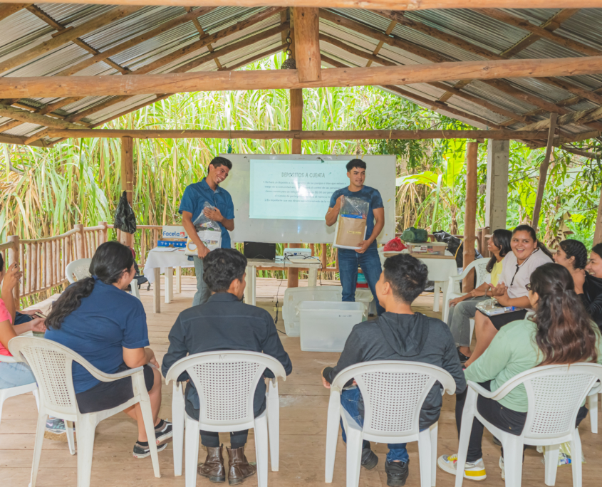 Im theoretischen Teil der SEMBRAMOS Projekte nehmen junge Menschen und lokale Organisationen an Workshops teil, die ihnen Wissen zu den Themen Umweltschutz, Abfallentsorgung und -verwertung, Baum- und Gemüseaufzucht, Pflege der Pflanzen und Waldaufforstung vermitteln.